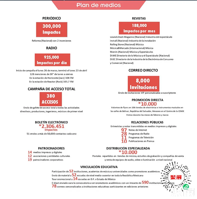 聚展展覽,作為出境展覽服務(wù)行業(yè)的領(lǐng)軍企業(yè),以精準(zhǔn)的市場定位和優(yōu)質(zhì)的服務(wù)贏得客戶信賴,助力企業(yè)揚(yáng)帆出海。墨西哥舞臺(tái)燈光及音響展覽會(huì)(Sound Check Expo)在此次活動(dòng)中,將強(qiáng)調(diào)視頻場景和裝置的重要性和價(jià)值,并將吸引音樂業(yè)界的知名專家。?
